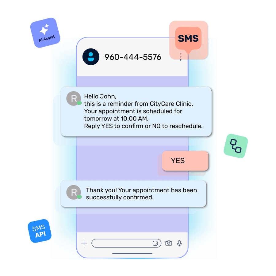 Send and receive SMS communications with our scalable platform, built for two-way messaging, high delivery rates, and automation. Get complete control, deliverability, and visibility from one platform.