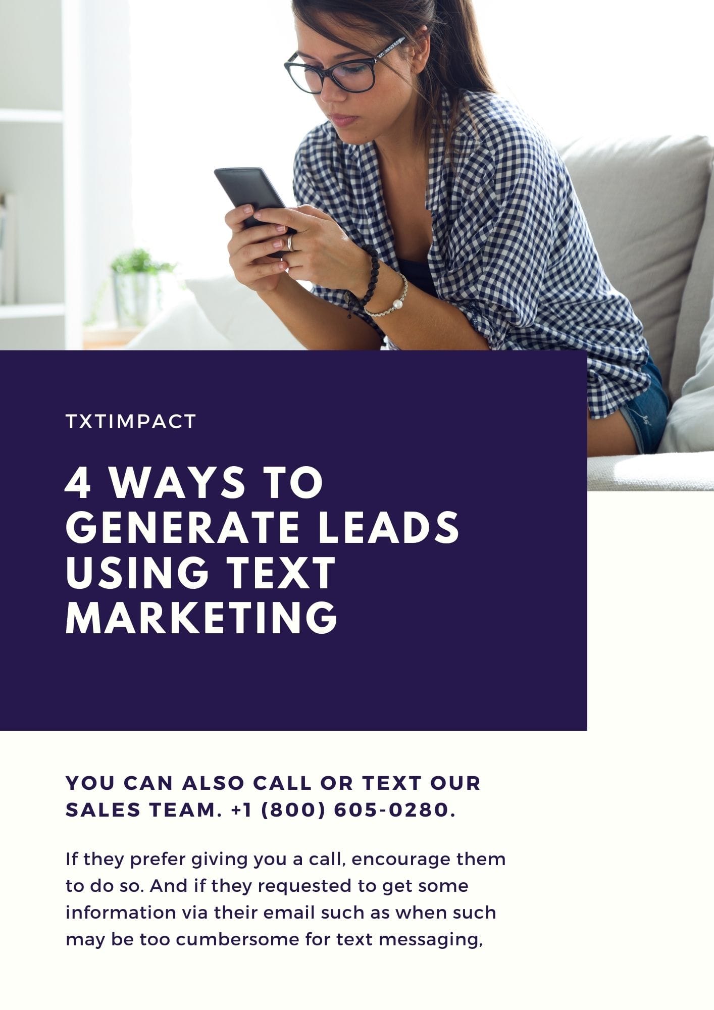 When you get a lead using text marketing, confirm if they are comfortable to further communicate with text or will prefer another medium. Although the number of people that will want an alternative medium is low, as a marketer, your end goal is the most important ― get the lead to take the required action!