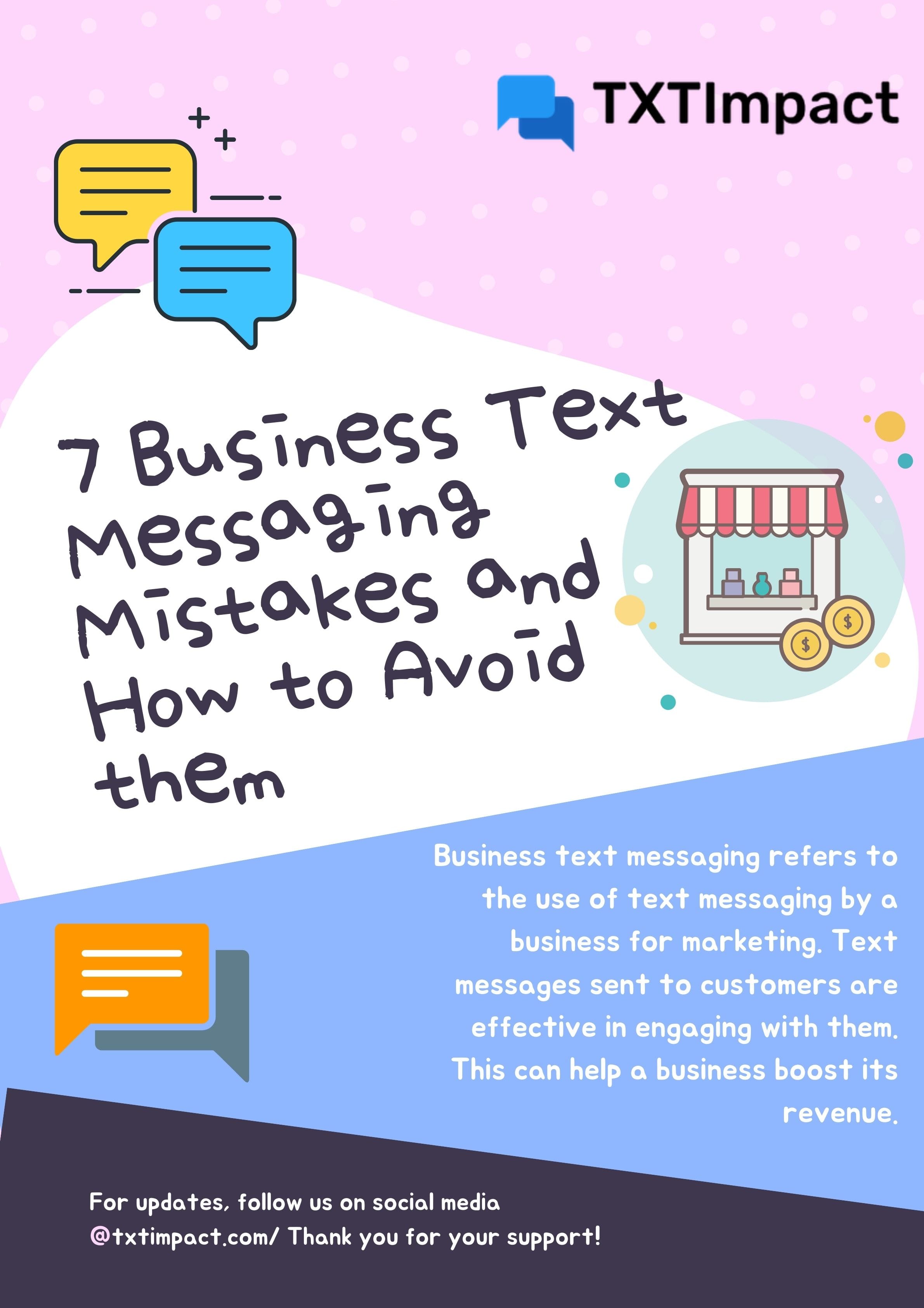 <h2>We look at seven much mistakes and understand how to avoid making these mistakes:</h2> <h3>1) Not providing a way to opt-out</h3>When you send text messages, you would have taken it from a database where the customer has expressed a willingness to receive messages. This is not sufficient. Every time you send a message, you must let the customer know they have the freedom to opt-out from receiving the message. As per privacy laws in most countries, it is mandatory to give the option for customers to stop receiving the messages. You can add a line like “send STOP to XXXX to stop receiving messages”.