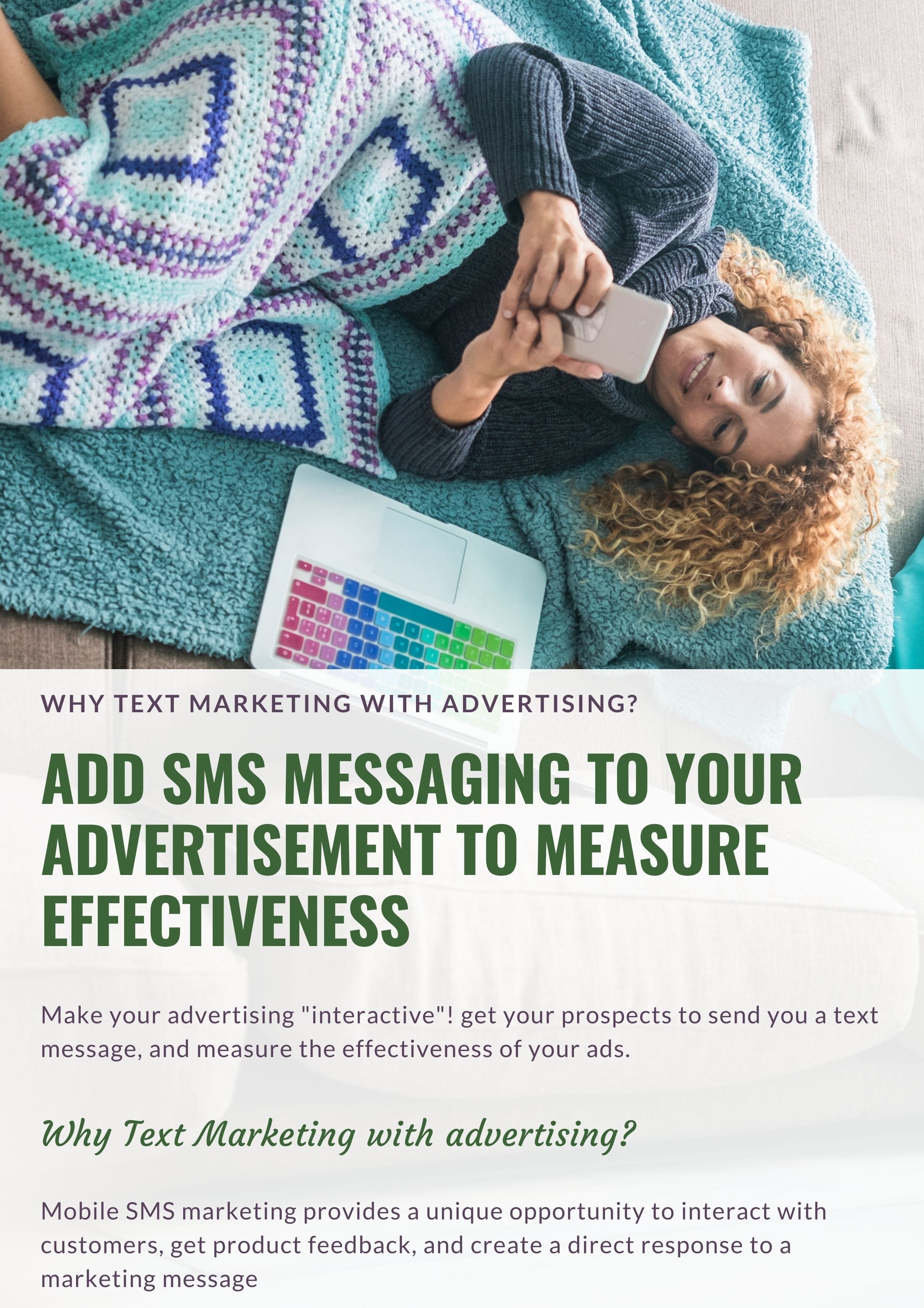 There's an ad for your mortgage company that says, "text Sam to 27126 for today's interest rates and more information." That person instantly gets back the latest rate, and you can follow up with them in the future to help them with their loan. You can also judge the readership of your ad.