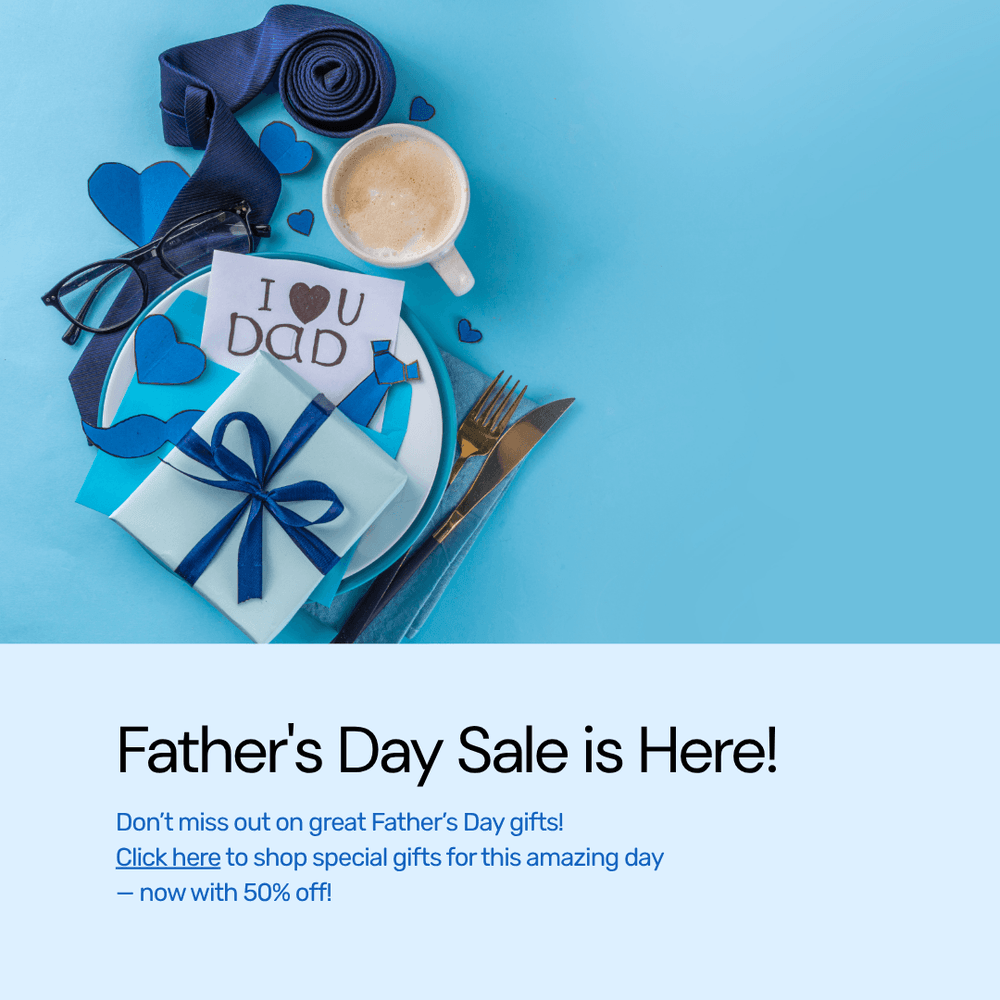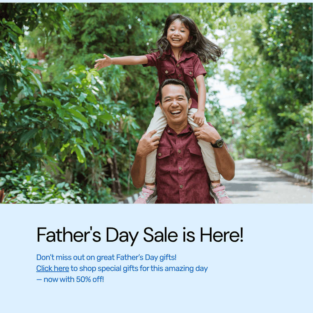 Best for retailers, online stores, subscription-based, and seasonal businesses. Such campaigns could highlight the idea of being a one-stop shop for all the last-minute rushers who are looking for Father’s Day gifts.