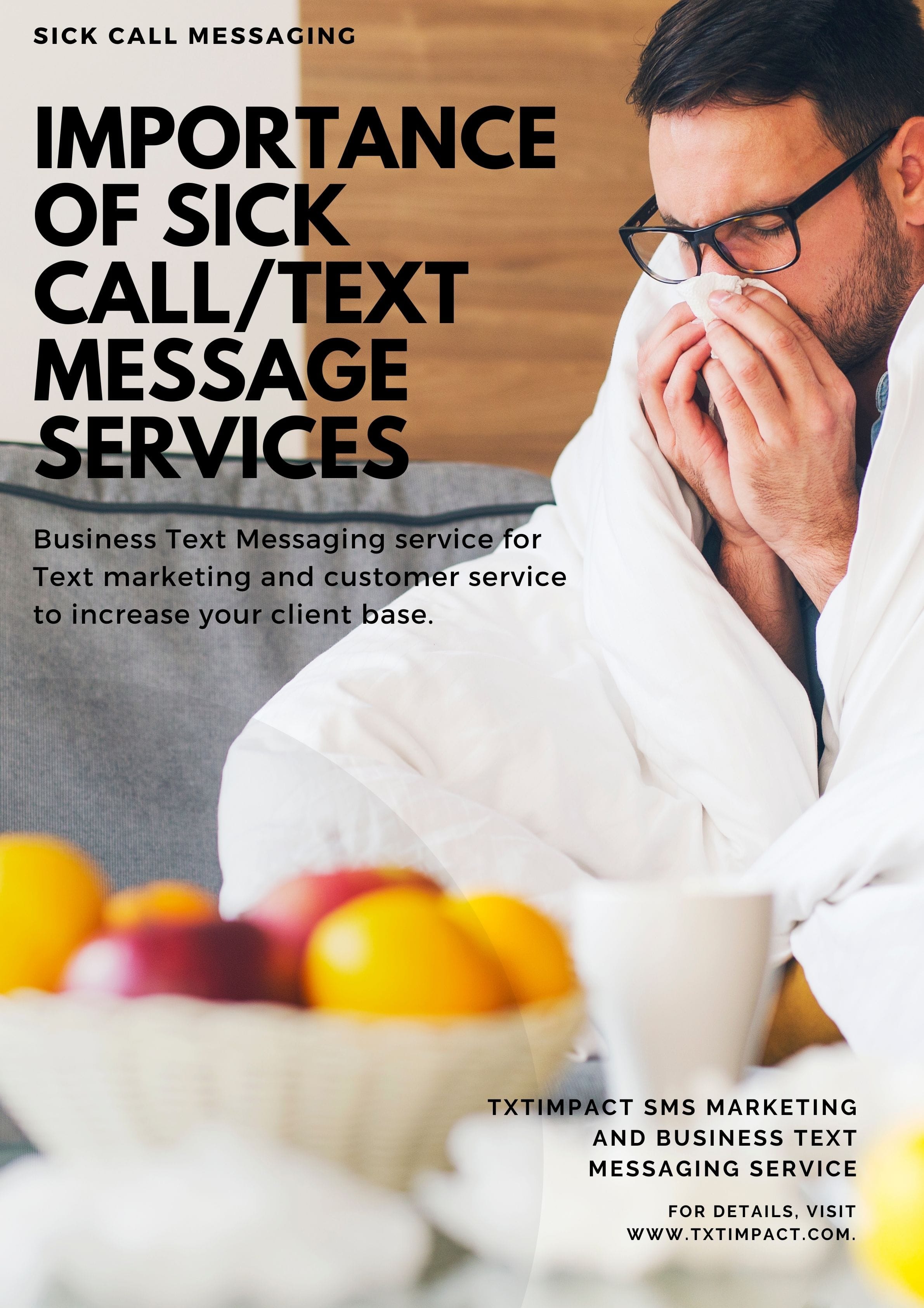 <h3>Keep the Message Uniform</h3> If you were to make a personal telephone call, you will get many cues from the tone of the reply, the pauses, and the choice of words the person uses when they answer you. But in sending the SMS text message, you help to make the message the same for everyone. This reduces the stress build-up that happens when you personalize the message. By making use of a uniform, standard message, you become better prepared to answer the questions they ask you when you return for work. You can go through the sickness without any stress buildup from your colleagues at the workplace. <h3>Be Relaxed About Your Absence from Work</h3> The important thing is to recover from your sickness. But not everyone is sick when they take leave. At times, it might be because they have to take their child to school. Or, it might be because they don't feel like working. In such cases, send the correct text SMS message that conveys the right impression and has the right words. You could say that you are not mentally feeling up to it and you want to relax for the day. You will come to work when you feel better the next day. <h3>Keep the Customers Informed</h3> Most of the time, your office work remains linked to daily deadlines and targets. Be sure to reschedule your meetings and inform all your clients about the new dates. Send messages from your office telephone so that customers trying to reach you will get the message that you are not available at the moment.Using the SMS messaging service helps you in your daily life as well as when faced with special situations, such as when you fall sick or have to celebrate an anniversary or a birthday. Make use of their group SMS facilities and <a href="https://www.txtimpact.com/schedule-text-message">message scheduling services</a> to get the best of their services. It is not wrong to fall sick, it is only wrong if you don't inform the ones who depend on you about it.