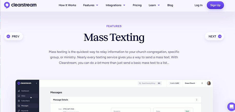 - Ease of use with an intuitive dashboard and simple setup that enables churches to import lists and create messaging campaigns easily.