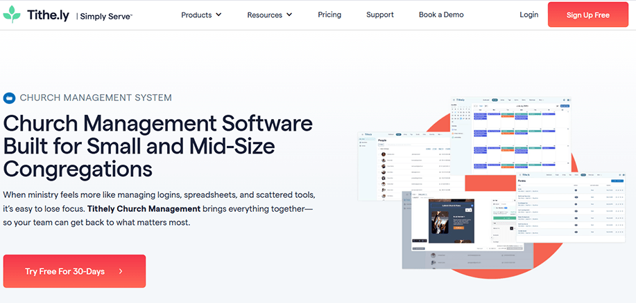 - Clean, church-focused interface