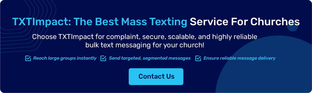 Church messaging services typically use monthly subscriptions or a pay-as-you-go pricing model, depending on the messaging features and volume. TXTImpact offers an affordable and scalable church messaging service, starting at $29/month, making it an ideal and convenient option for churches and communities of all sizes.