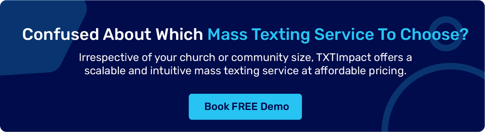 Book a demo today to try our mass texting for your church’s successful communication campaigns, or contact us to learn more.