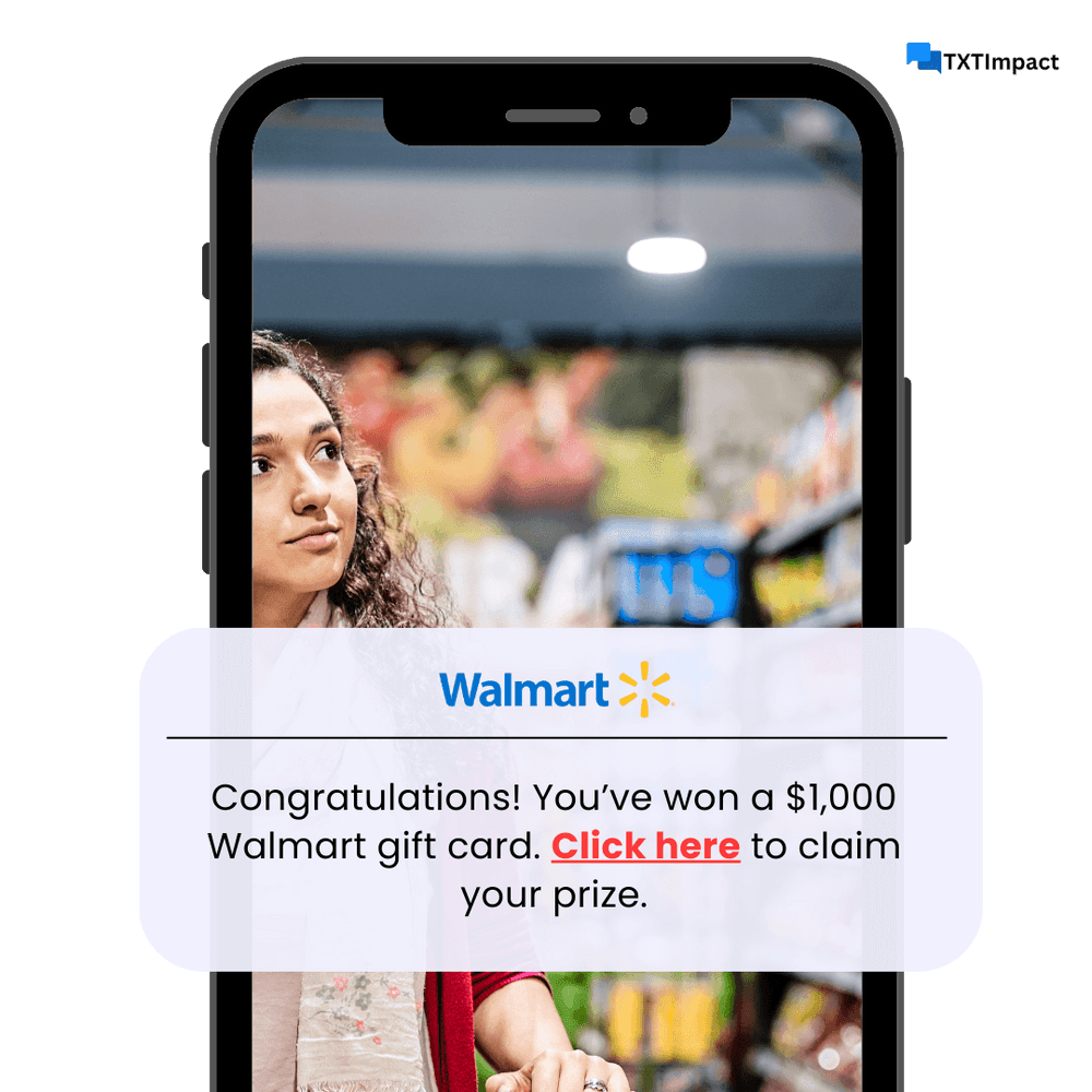 Example: Imagine receiving a text that says, “Congratulations! You’ve won a $1,000 Walmart gift card. Click here to claim your prize.” The link takes you to a fake website asking for your credit card details to cover “shipping fees.” This is a classic example of a spam text scam.