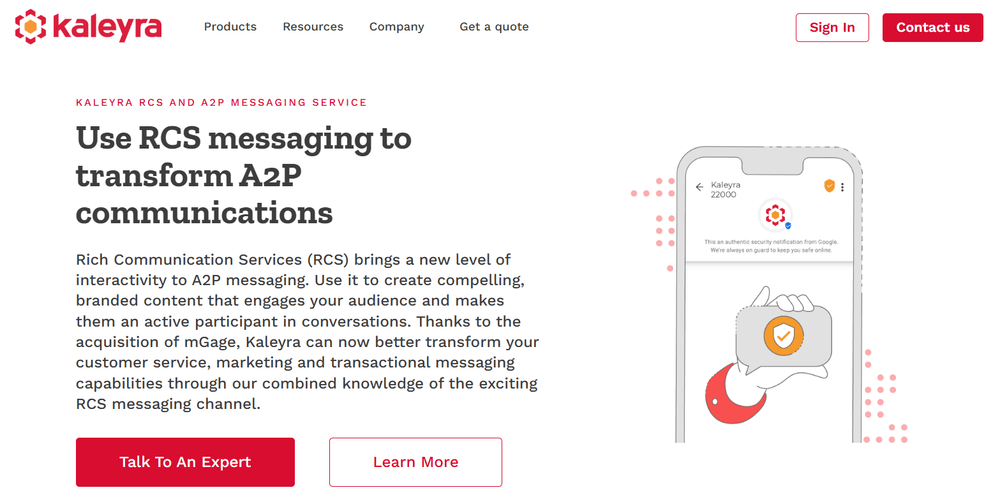 Kaleyra is a global CPaaS business messaging provider that offers omnichannel messaging services, including RCS business messaging. It’s built with a focus on high customer engagement and satisfaction, and better customer support.