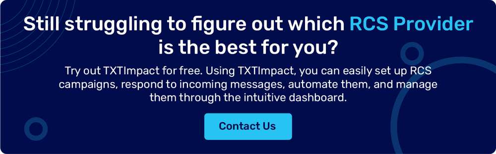 Several CPaaS and business messaging providers support RCS messaging. These providers include TXTImpact, Twilio, Sinch, Route Mobile, and more. The services differ for each platform based on the integration capabilities, pricing, and levels of managed services.