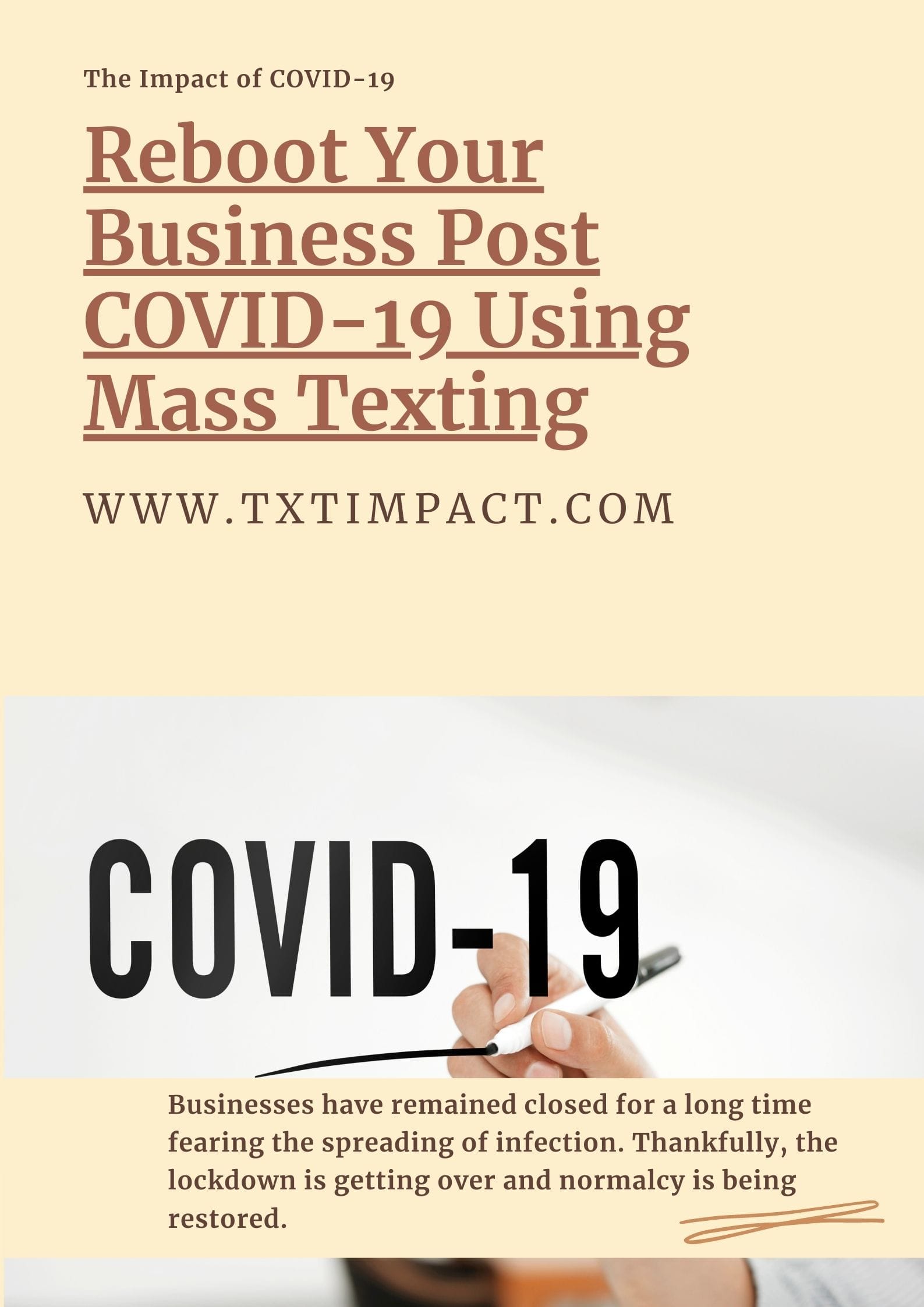 The post-COVID19 situation has thrown up more challenges. Businesses are not just re-opening but they need to reboot their business. This is a great challenge, as they need to take into account safety protocols and at the same time get customers to come in to get revenue. There are many strategies that can help businesses to do this. The article examines the key issues involved and focuses on how mass texting can be very helpful in reaching out to customers.