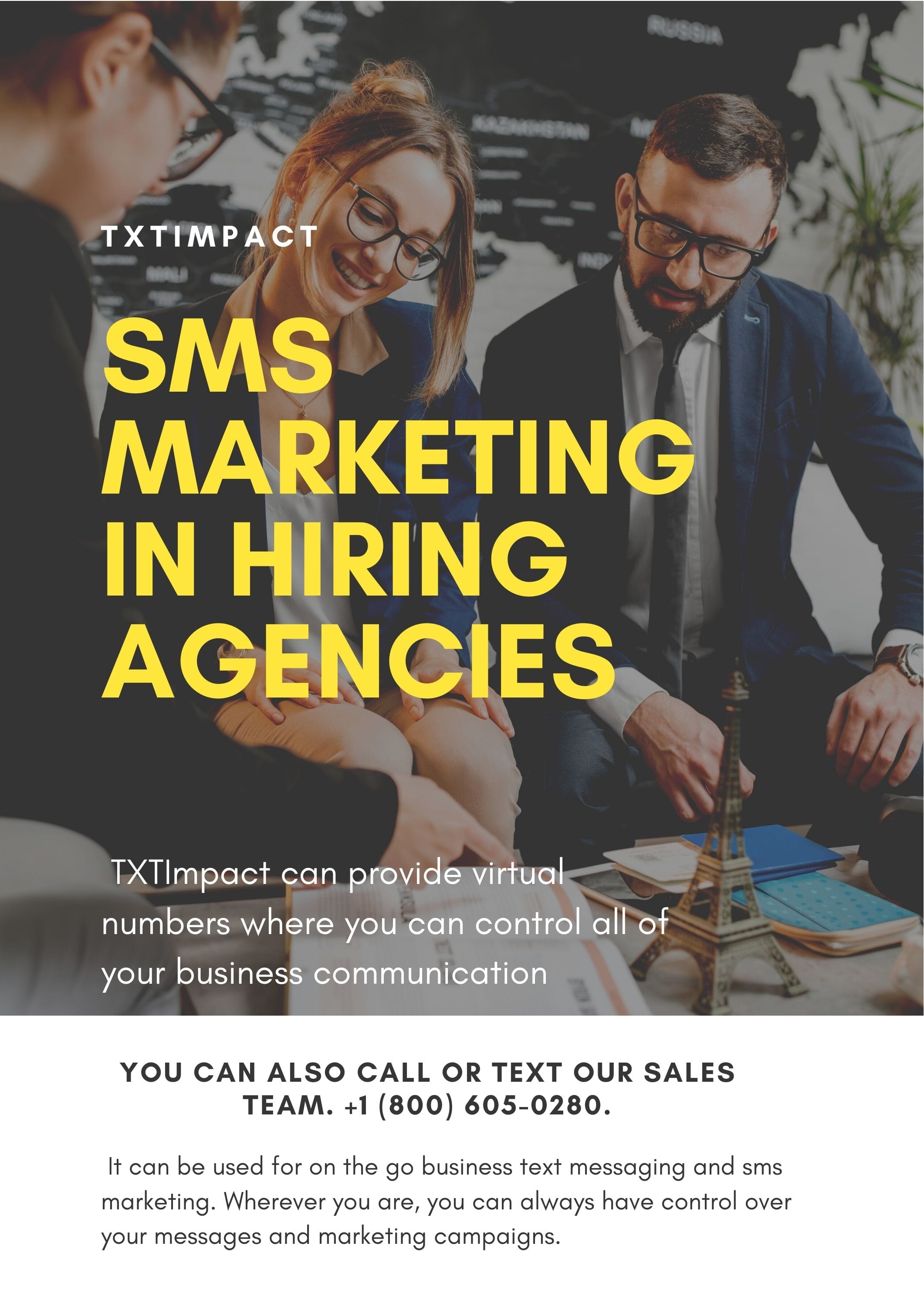 Are you looking to increase efficiency in your hiring processes? Try <a href="https://www.txtimpact.com/sms-marketing/">SMS marketing</a>. Make hiring easier by implementing sms based communication with clients and other businesses. Send thousands of texts at a time and automate the process. TXTImpact can provide virtual numbers where you can control all of your business communication, away from your personal number or other hotline numbers you may have.