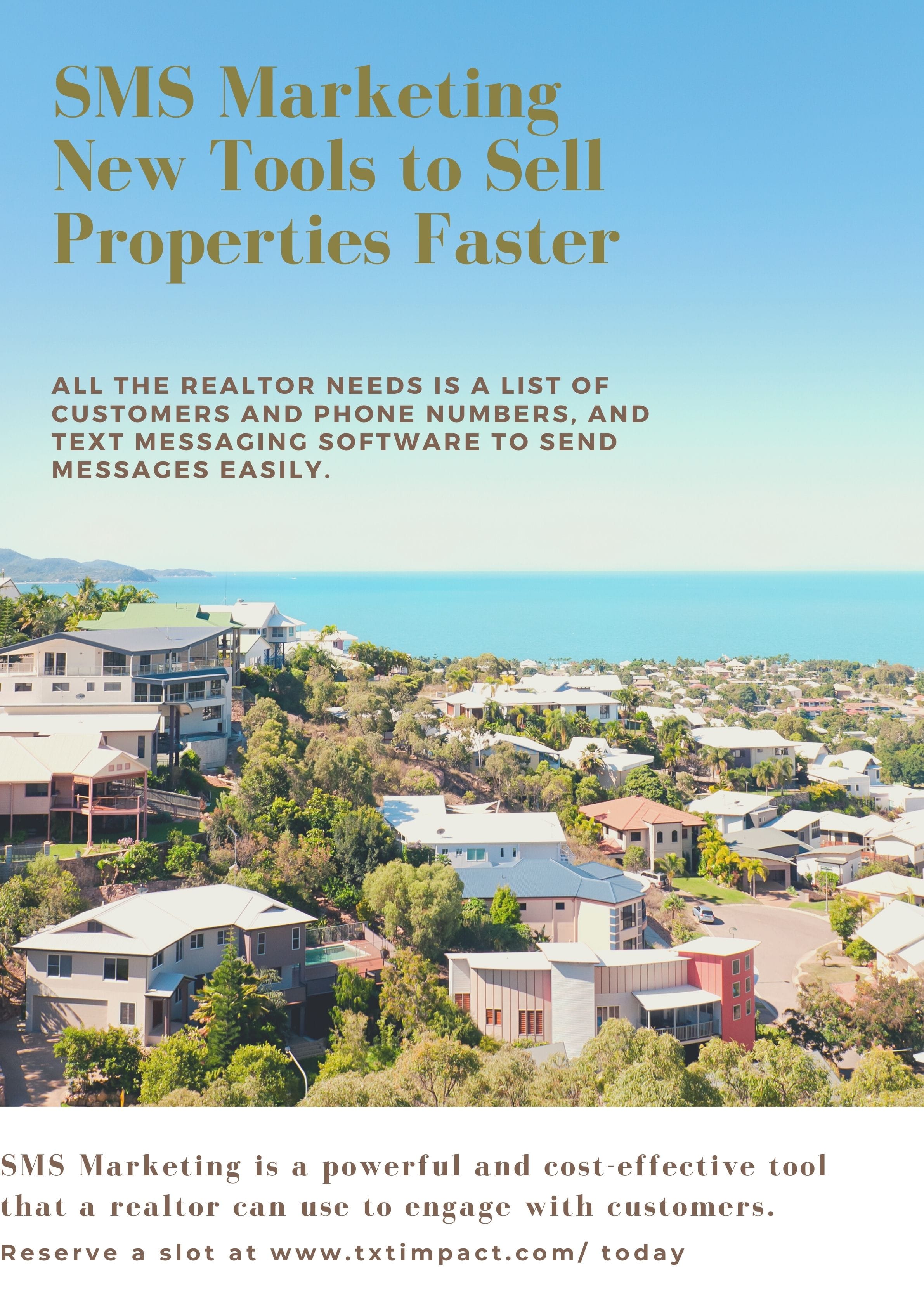 Studies have shown that more than 97% of all text messages are read by the recipient. The response rate to text message marketing is higher than <a href="https://www.txtimpact.com/send-text-message-from-email">e-mail marketing</a>. The reason why customers prefer text marketing is that it is non-intrusive. They can check messages even at work and reply at their convenience. This is the reason SMS marketing is being used widely as a marketing strategy. Real estate organizations can also use SMS marketing to sell properties