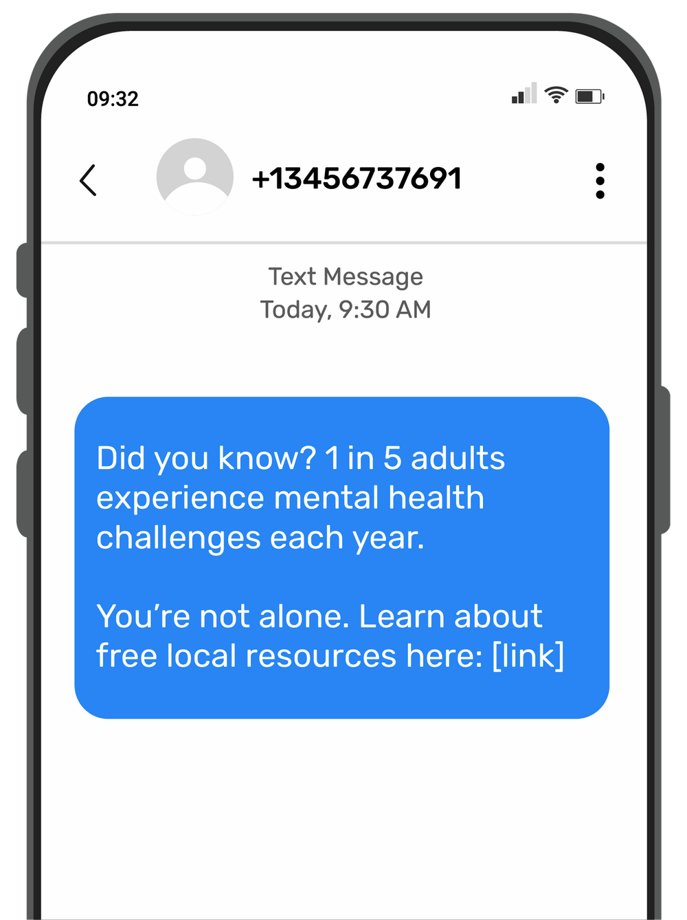 Example: “Did you know? 1 in 5 adults experience mental health challenges each year. You’re not alone. Learn about free local resources here: [link]”