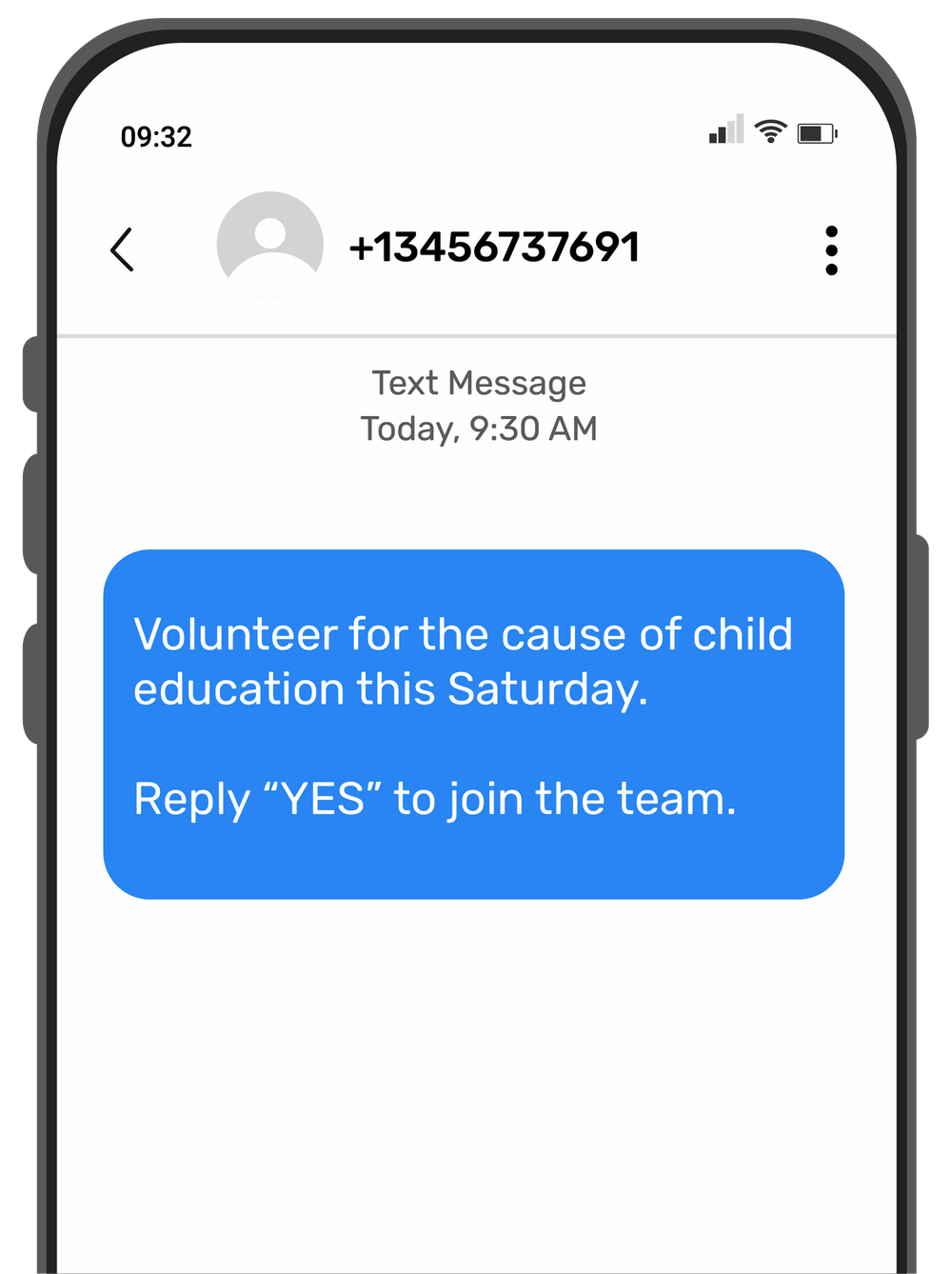 Example: “Volunteer for the cause of child education this Saturday. Reply “YES” to join the team.