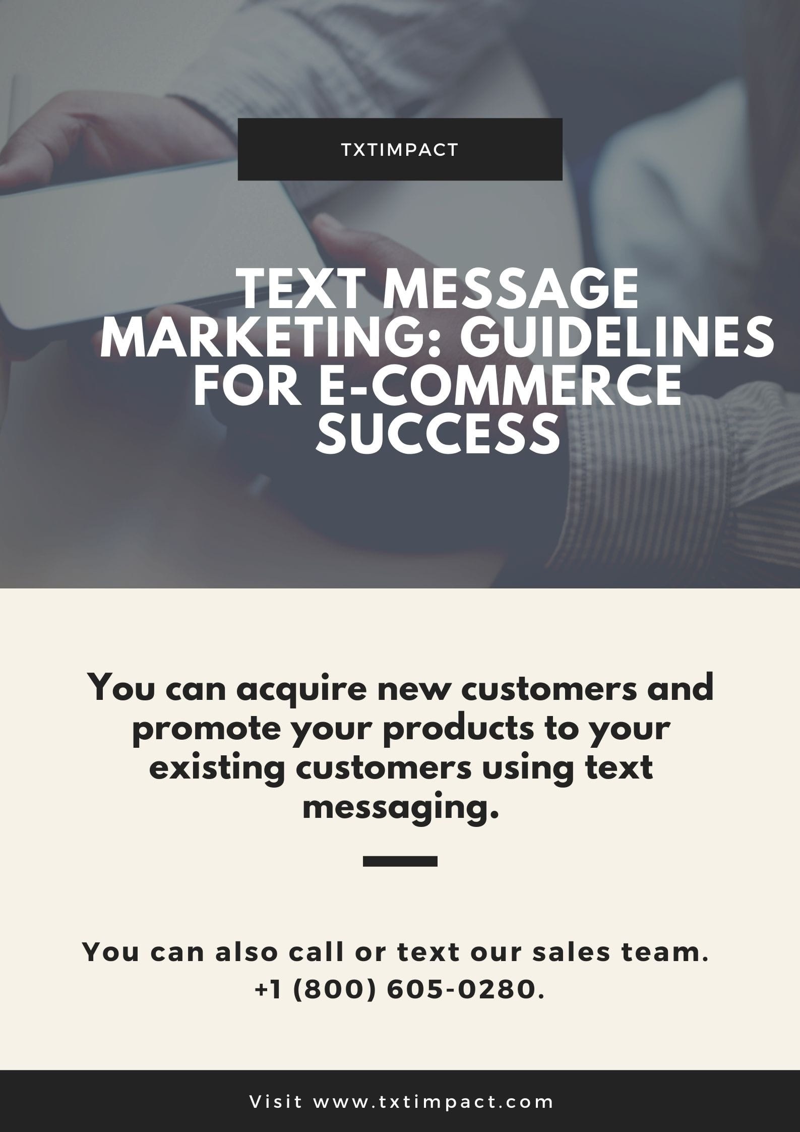 If you are running an e-commerce business, then text message marketing is a powerful tool that can help you. <a href="https://www.txtimpact.com/text-messaging-service">text messaging</a> marketing can be used to reach out to your customers and engage with them. You can acquire new customers and promote your products to your existing customers using text messaging. It is a simple and effective way of reaching out to customers, so you can boost sales. We present some useful and effective guidelines for e-commerce businesses to achieve success using text message marketing.