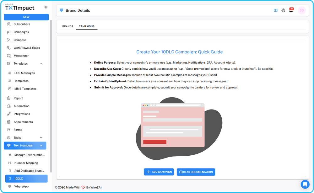 9. Built-in 10DLC and campaign registration