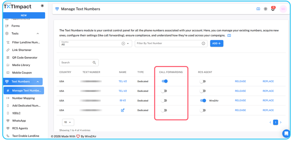 TXTImpact Omnihub supports call forwarding to efficiently route inbound voice conversations, enabling better response management, improved customer experience, seamless redirection to relevant items, and centralized communication handling.