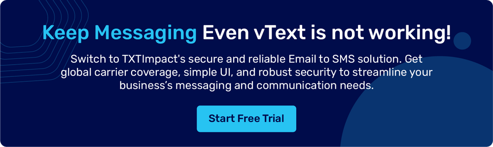 So, if not vText, then what to use for email 2 text? In this article, we’ll explore vText’s limitations and why it discontinued its email-to-SMS service, as well as why you must switch to TXTImpact to ensure a seamless SMS flow to your customers via email.