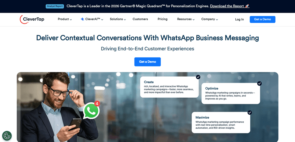 To help businesses create, automate, personalize, and optimize WhatsApp campaigns, clever Tap provides real-time analytics and advanced lifecycle automation capabilities on a single unified platform.