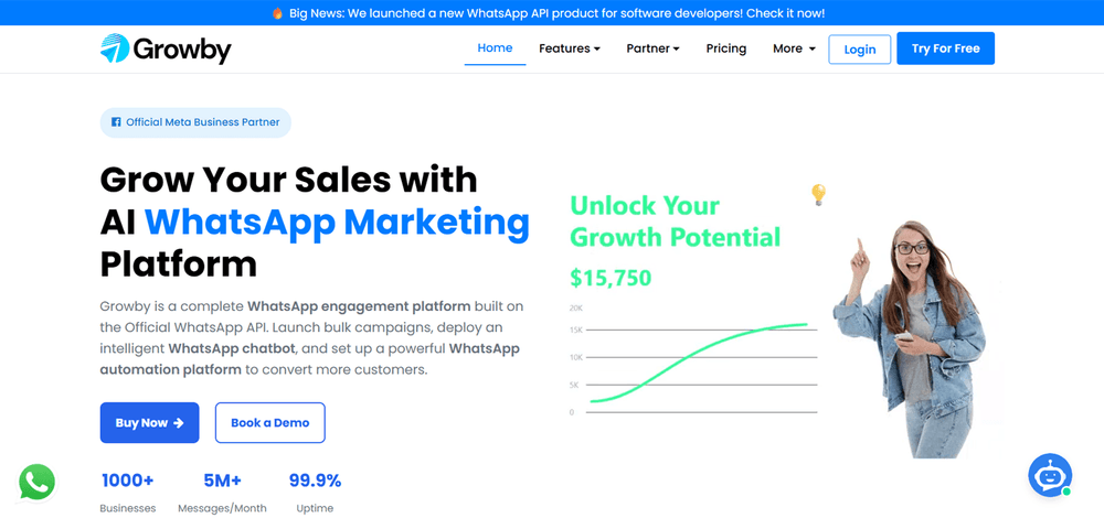 Growby provides a complete WhatsApp management and marketing platform built on the official WhatsApp API that enables businesses to easily launch bulk WhatsApp campaigns with an intelligent chatbot and automation platform.