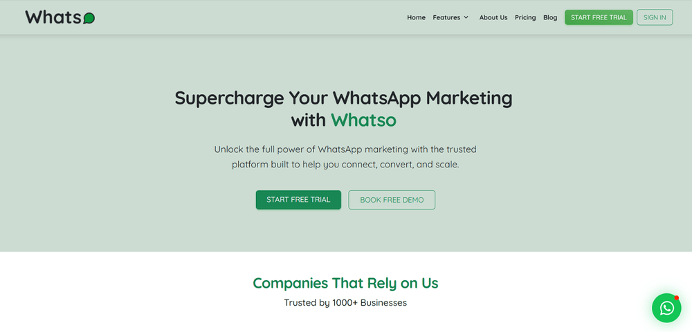 Whatso provides a dedicated WhatsApp marketing platform for businesses, enabling them to send messages through an intuitive, familiar interface.
