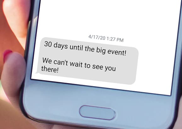 Companies can promote events by sending text messages to exhibitors, attendees, sponsors, and staff to inform and secure a guest and personnel count. Text messages can be used for text message polls during the live event, and pictures and texts can be displayed around the event.