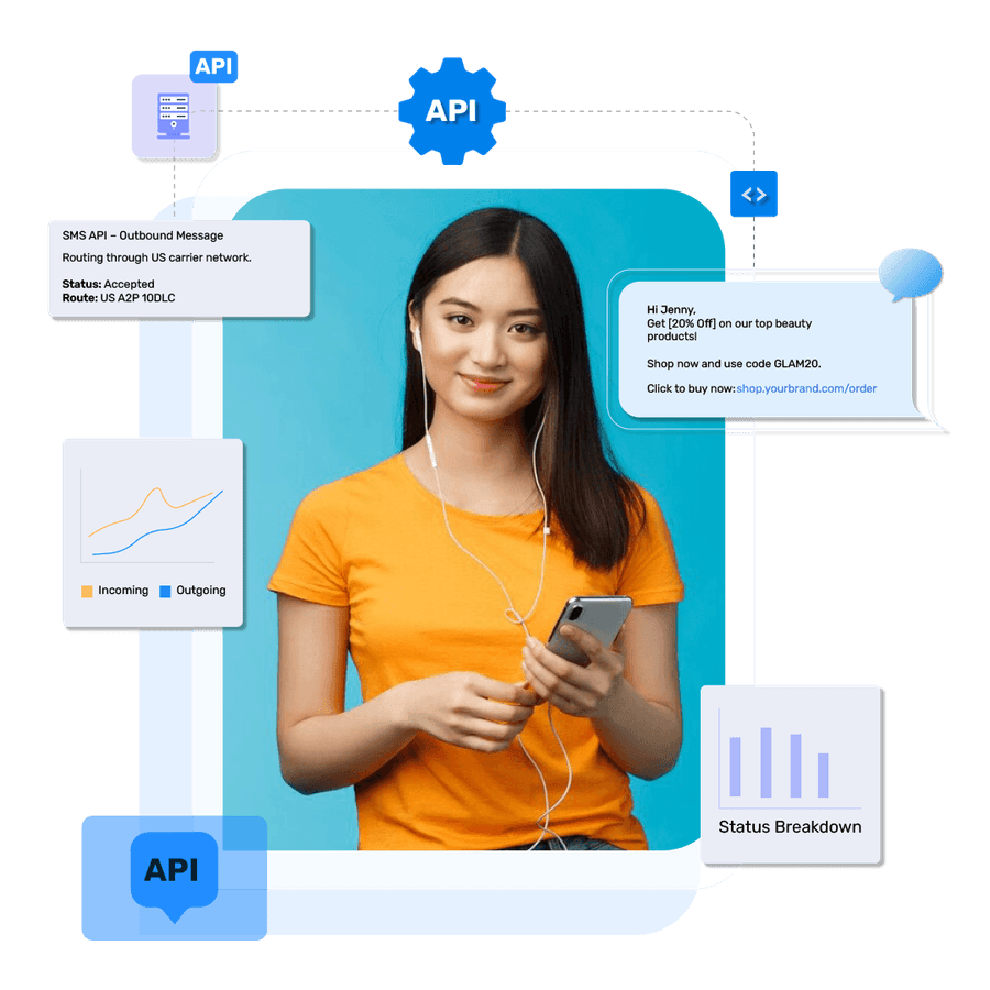TXTImpact’s SMS API gives developers the flexibility to send and receive SMS, MMS, and RCS messages directly within their CRM, ERP, or custom application.