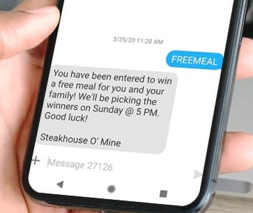 Restaurants can use giveaways to build their texting list for giving out daily specials at a later time.