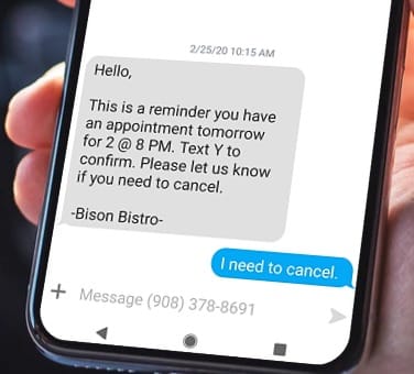 Allow your customers the freedom to text your business's phone number to both confirm and cancel appointments. When communication becomes as easy as sending a quick text, it allows your business to fill more tables.
