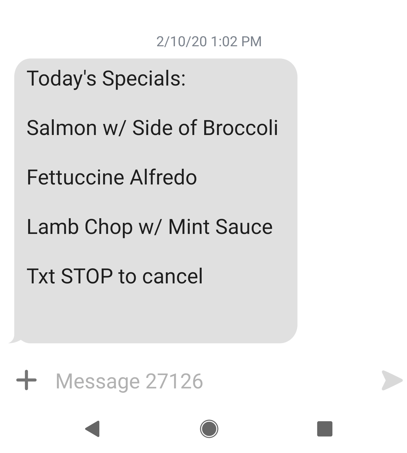 This is a great way to keep customers in the loop whenever you change your specials list. It can also serve the purpose of letting your customers know about a new item on the menu. In addition to this, your business can segment these texts depending on which customers click on certain texts.